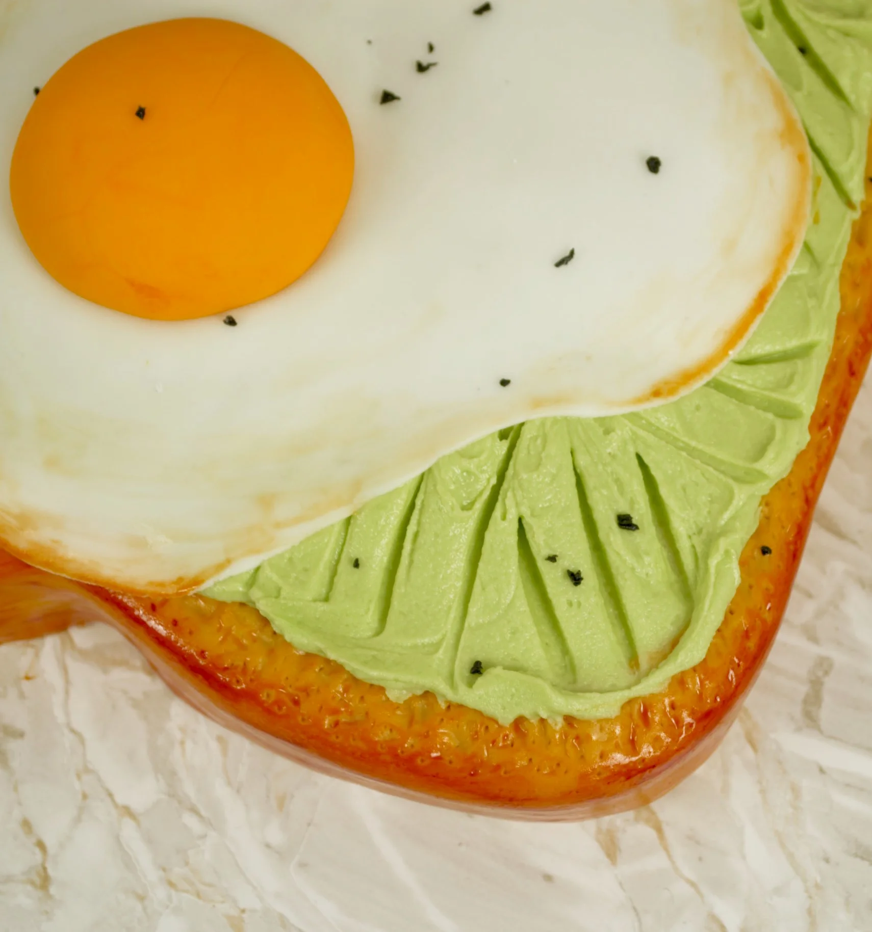 Back to the cake, since that’s probably why you’re here and not to listen to my dramatic musings on reality TV love interests. This week’s cracking (hehe) effort was actually not meant to be avo toast at all. I’d planned on making a bucket and spade, sandcastle style with wee turrets and stuff, but it turned out my cake pan was bigger than I thought, my mixture didn’t go as far as I’d wanted and it was gonna be the world’s shortest sandcastle. Safe to say, I was too lazy to mix up another batch and make it taller. After an hour wondering what the frick I could make with two square cakes I gave myself a wee snack break for avocado toast. And it hit me! Toast can be square! I love toast, I love avocados, I love runny eggs and I LOVE making cakes into giant versions of my favourite foods. It was so eggciting! I could actually feel myself breaking out of my cake block, or shell as it were.